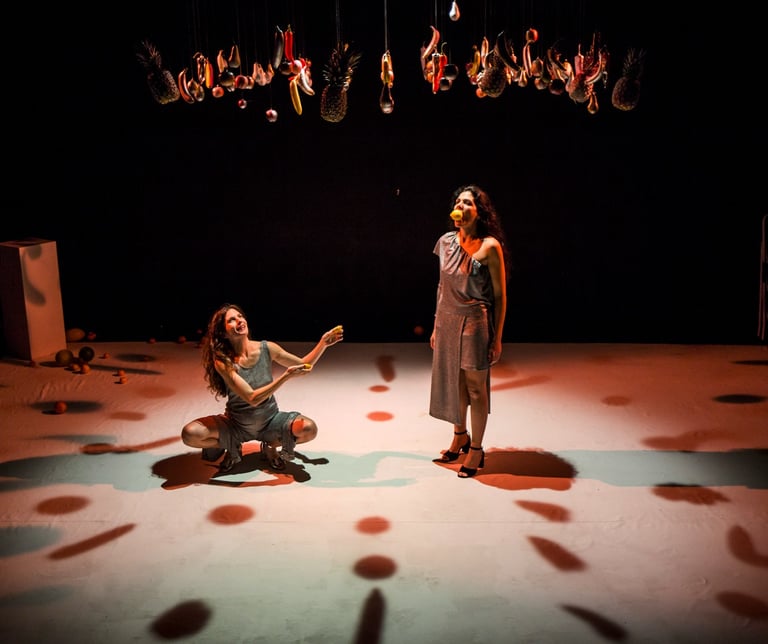 'The rejection of theatrical conventions and the pair’s bold use of body language have a cathartic outcome and I ended up relating both to them and and to the discomfort their relationship caused them. Towards the end of the performance I enjoyed watching the pair spit accusations at one another, especially as this became physical, with the help of some melons and lemons. Where the narrative went astray, symbolism filled in the gaps and took centre stage.' Review by Marianna Meloni, Everything Theatre, 17 Dec 2016