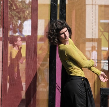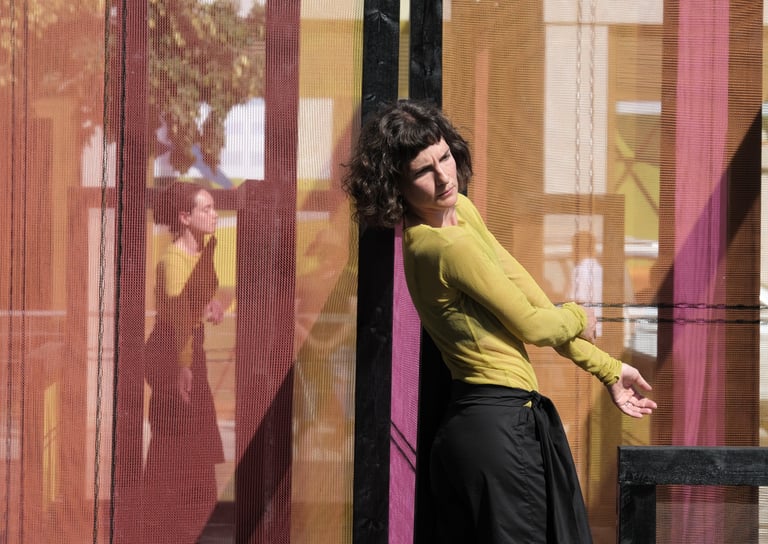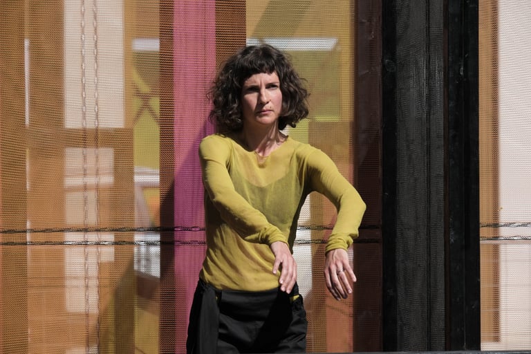 Following our previous works (Un)touched and (De)figured, we have developed a performance installation for the environs of Canary Wharf. Synthesising movement with architectural forms constructed from materials resonant of the built environment, Expanded Landscapes points to the notion of transience in the midst of surroundings that are shifting and rebuilding. playing with cycles of urgency, resistance and erosion acting in tension with the false certainty of structures. Viewers are free to watch from multiple perspectives. The density of colour changes according to the quality of light over the passing of the day.