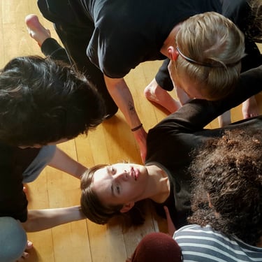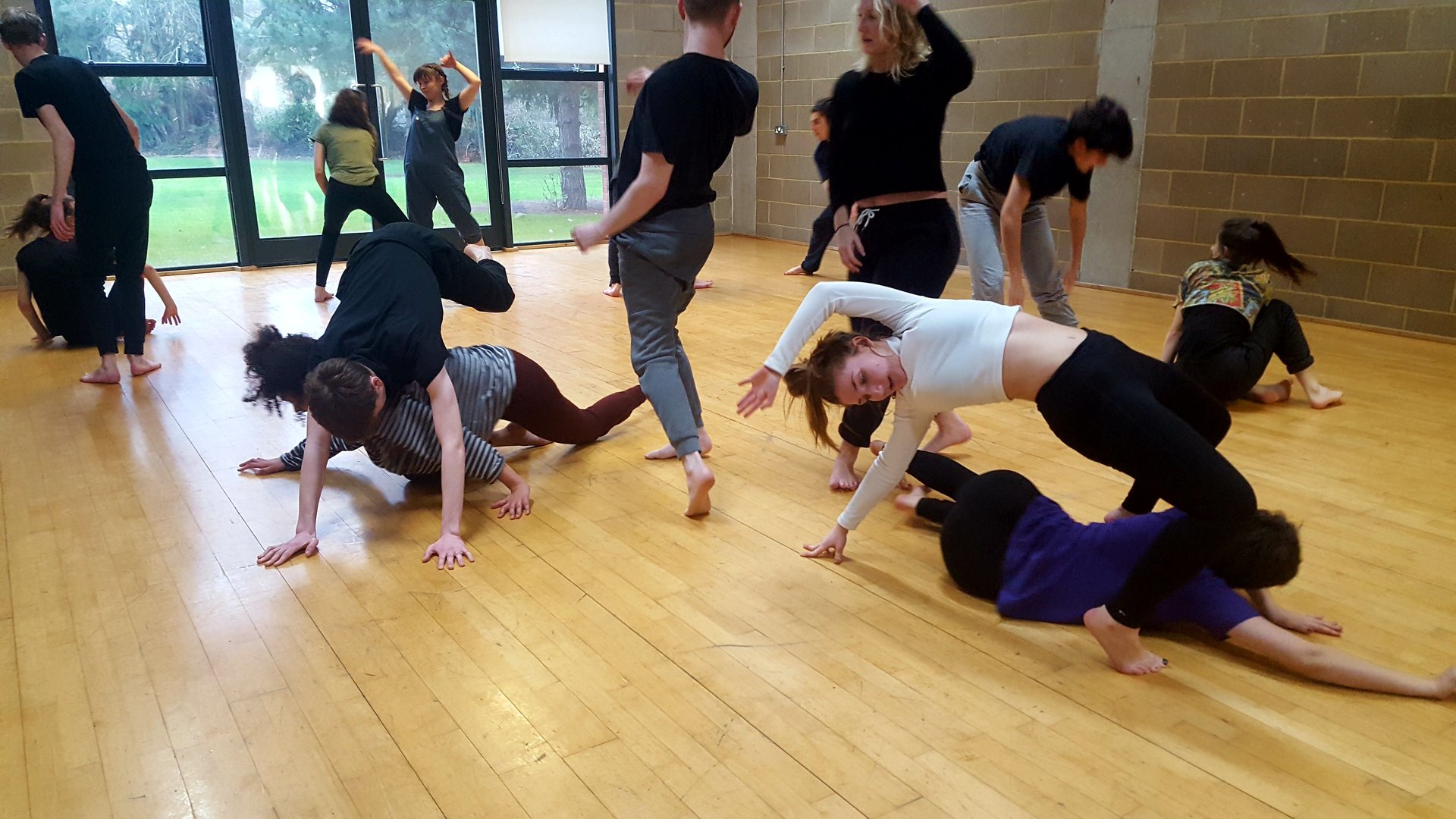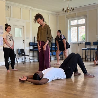My movement teaching fuses elements from Eastern European Laboratory theatre and dance-theatre; yoga; somatic movement; postmodern dance; Laban/Bartenieff; Contact Improvisation; and experimental theatre and writing. I have a deep interest in the senses, especially touch as a tool for training, fostering ensemble connection and composing. Cultivating somatic awareness enables students to become curious about how their body works and how it can transform in order to access more heightened levels of expression. Combining experiential anatomy, poetic visualisation, contact, rhythm and impulse-based work, my classes focus on breath-infused receptiveness, playful risk-taking and fine tuning with the self, the partner, and the environment.